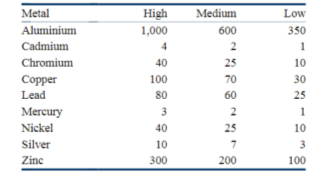 Typical content of metals in municipal wastewater with minor contribution of industrial wastewater (Henze et al.2001)