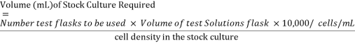 cells to provide an initial cell density of approximately 10,000 cells/mL (± 10%) in the test flasks. In the case of using 250 mL flasks, each containing 100 mL of the test solution, the inoculum must contain 1,000,000 cells/mL.