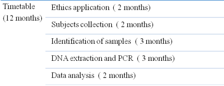 PCR will be carried out for detection of smr, qacA/B, G, H and J using primer sequences published previously (Table 1). [8, 9] The volume of each reaction in the PCR will be 50µl. Each reaction tube will contain 5µl of 10x Expanded High Fidelity buffer (without MgCl2) (Roche, Lewes, UK), 4µl of MgCl2 at a final concentration of 2mM (Roche, Lewes, UK), 8µl of dNTPs (1.25mM), 1 µl (50pmol) of forward primer, 1µl (50pmol) of reverse primer and 20µl of sterile H2O. Template bacterial DNA (10µl) will be added, and a negative control will be included containing 10 µl of sterile water instead of template DNA. Finally, 1U of ExpandedHigh Fidelity Enzyme mix (Roche, Lewes, UK), containing thermostableTaq DNA polymerase and Tag DNA polymerase with proof-reading activity, will be added to each reaction. The cycling conditions will be as follows: DNA denaturation at 94°C for 3 min, followed by 25 cycles of 94°C for 30 s, 55°C for 30 s and 72°C for 1 min. This will be completed with an extension step of 72°C for 5 min. PCR products will be analyzed by electrophoresis on a 2% (w/v) agarose/1x TBE gel.