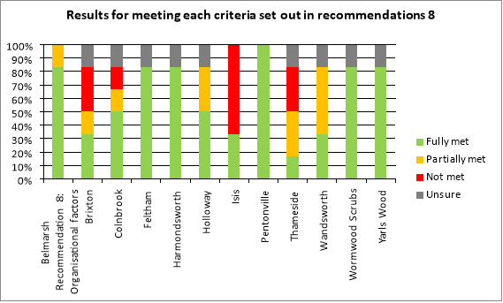 Of the 26 criteria set out in the four recommendations, just over half were fully met by the prisons and IRCs in the London region and nearly a third were not met at all: