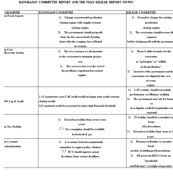 => REPORT OF THE RANGRAJAN COMMITTEE, THE PSC MECHANISM IN PETROLEUM INDUSTRY, MINISTRY OF PETROLEUM AND NATURAL GAS, 2012 http://cac.gov.in..-reports, rep psc0201 .pdf last accessed on 4/03/2014.