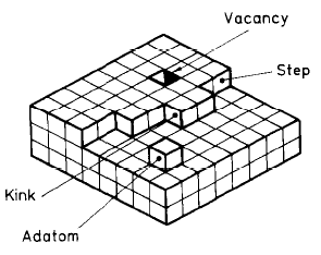 Figure 2 . Vacancies, adatoms, steps and kinks on a Kossel crystal