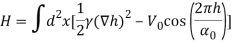 The energy of a 2D surface is given by: , γ is the surface tension and corresponds to the free energy with no fluctuations. For surfaces with small roughness. The eq. can then be written as , L is the system size and describes quite well the fluctuations of a free surface. But apart from reality the previous equation describes a continuous model and a real crystal is made by atoms separated by discrete distances the lattice constant. In order to achieve a good approach of the crystal lattice then we should introduce a periodic potential V(h) with h being the lattice constant and if have to describe real crystals then the delta function should take place in the equation to prevent potential different than the discrete lattice values. Besides all these assumptions using Fourier transformations the potential can be written as