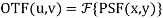 Now we introduce two functions that can show the quality of the image: Optical Transfer Function (OTF) and the Modulation Transfer Function (MTF). Either OTF or MTF specifies the response to a periodic sine-wave pattern passing through the lens system, as a function of its spatial frequency or period, and its orientation [WIKI]. The OTF is the Fourier transform of the PSF, and the MTF is the real magnitude of the OTF. In a 2d system, these two functions are defined as: