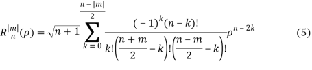 Where m and n denote the radial degree and the azimuthal frequency, respectively. The radial polynomials are defined as: