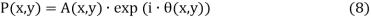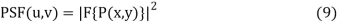 Where denotes complex aperture function (or pupil function). denotes the phase of the wavefront, and the 'i' is the imaginary unit and denotes the amplitude function, which is usually one inside the circular pupil and zero on the outside. The PSF can be expressed as the square of Fourier transform of the complex aperture function:
