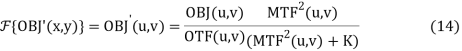 This means If we can process the OBJ' as defined, we will have the intended image in the observer's eyes. To form the OBJ' we introduce Minimum Mean Square Error filtering (or Wiener Filter)