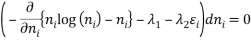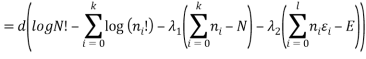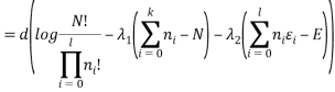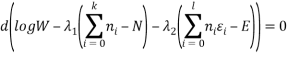 The forgoing hopefully suggests that we need to maximise the weight function subject to the constraints that the average energy is that given by the macrostate, and we must also have the problem constrained so that the total number of atoms in each occupancy level sums to the total number of atoms . If we have occupancy levels and energy levels, Lagrange's method (appendix 2) tells us to minimise the following, but Boltzman found that it was easier to minimise . We have: