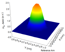 Initially, the optical properties of the reference and the sensing arm of the single mode silica nanowires immersed in aqueous solution have been examined, where the latter is coated with the linker, antibody and E.coli under detection and the 3-D optical field profile of the mode of the two arms, for a core diameter, D, of 400 nm is presented in Figure 5.2.