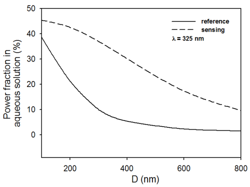 The refractive index of the single-mode silica nanowire and the aqueous solution were considered to be 1.482 and 1.355, respectively, at an operating wavelength of 325 nm [213].