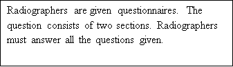 In this study, a sample selection of 40 radiographers who have answered the designated questionnaire will be randomly taken out from the target population.