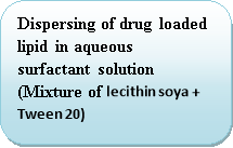 Initially, SLN was prepared by solvent injection method by using clobetasol (drug), carnauba wax and beeswax as lipid phase, cetyl alcohol and lecithin soya as surfactants. Tween 20 as co surfactant phase and finally distilled water to make up the volume. Where in this method, both liquid phase and lipid phase were heated to 70-75oC. When lipid phase was heated to desired temperature drug was dispersed in it and added to aqueous phase under the magnetic stirrer for 30mins. The lipid phase is added in to aquoes phase by drop wise using syringe. Thus SLNs were formed due to rapid crystallization of oil droplets and precipitation. This respective formulation design is shown in table 7. But the formed SLN was not dried and unstable. Therefore lipid extrusion method was used to prepare various formulations with different concentrations of lipid in an effort to optimize the formulations for the particle size ranging in nano scale.