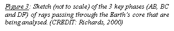The differences in travel-times are analysed for three different ray path phases: AB, BC and DF (shown in figure 3). Ray paths through the Earth are very close together, hence the need to analyse relative travel-times. Mantle convection is slow, and the Outer Core is well-mixed, and thus the travel time of the BC phases should remain relatively constant over time. It should, therefore, be safe to assume that any variations observed over time will have an Inner Core origin. Each of these phases travel through different sections of the Earth’s Mantle and Core, and thus contain different information, therefore, changes between phases are unlikely to be due to event mislocation. The contrast between AB and BC phases are mostly just scattered; however, the difference between BC and DF phases show a systematic increase over time.